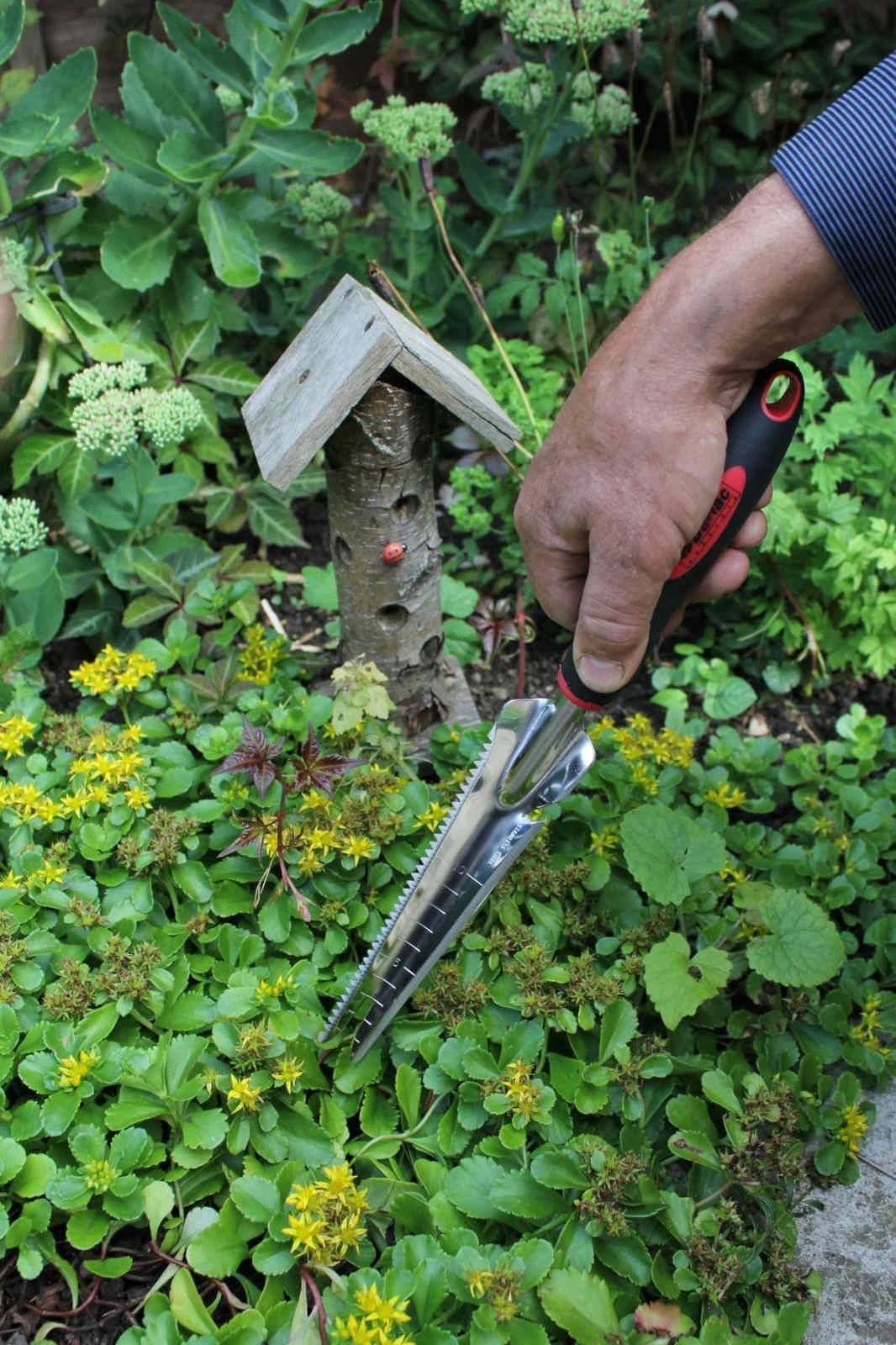 This versatile tool has five diverse applications. Use forked end for lifting weeds, the honed edge for easing plants out of pots and the saw edge to cut through small roots.
