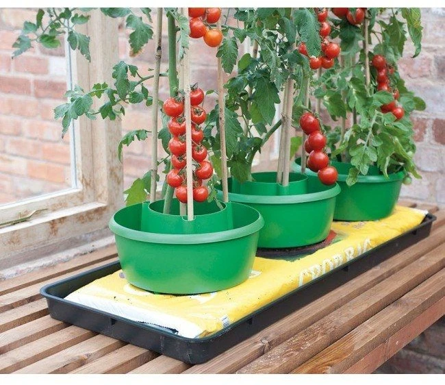 Sold in sets of 3, Plant Halos can be used on grow bags, pots (with a diameter of 26cm and above), raised beds, as well on traditional vegetable plots. The central inner pot creates the planting area which is particularly useful when used with grow bags as it allows a deeper planting zone to develop healthier plants. A 3.1 Litre outer ‘moat’ features six 2.8cm watering spikes which penetrate below the surface, delivering water direct to the plant’s roots. This ensures that water and liquid feed are delivered at a reduced rate that the plant is better able to absorb, preventing wastage which is common with conventional watering. It typically takes between 3 and 6 hours for the water reservoir to drain fully, depending on the weather and soil conditions.