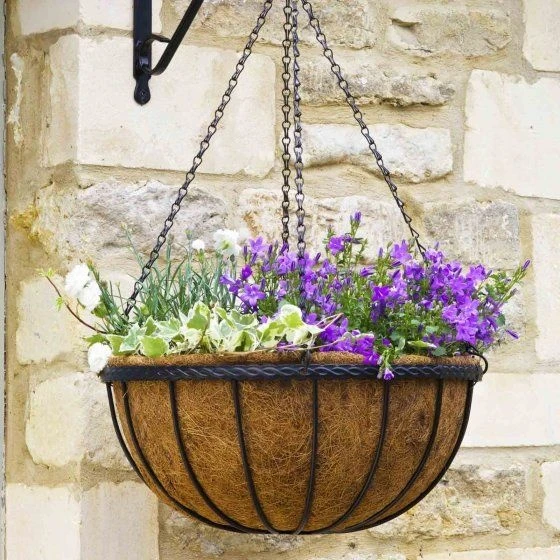Metal hanging basket with integral coco liner for longer life